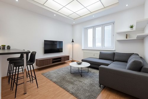 Samotný byt představuje tiché soukromé místo, je orientovaný do dvora a je výborně dispozičně řešený. Skládá se z předsíně, obývacího pokoje s kuchyňským koutem, dále z ložnice a koupelny. Kuchyňská linka s barovým pultem je vybavena spotřebiči (dvouplotýnková varná deska, lednička, pračka). Koupelna má sprchový kout, umyvadlo, toaletu a topný žebřík.