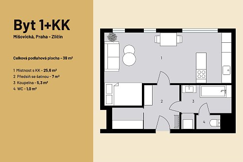 Prodej zařízeného bytu 1+kk, Míšovická