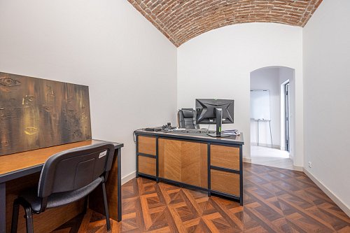Prostory jsou vhodné jako kanceláře, showroom nebo ateliér. S ohledem na seriózní rezidenční charakter domu volíme pouze poklidný provoz.