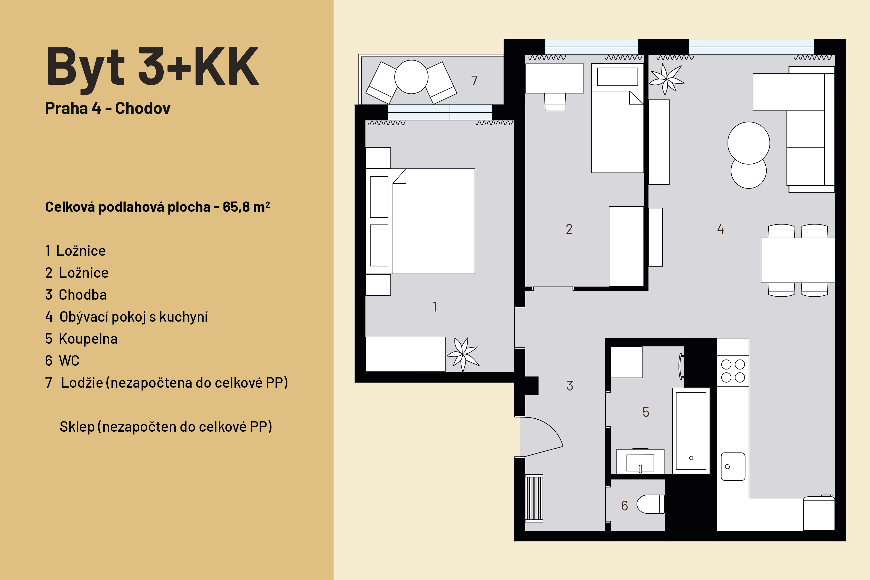 Prodej nového bytu 3+kk, s lodžií, Chodov