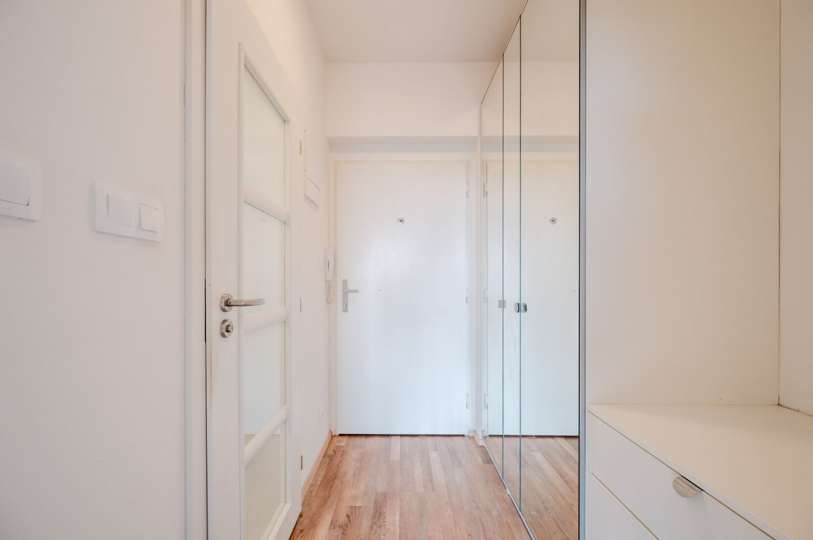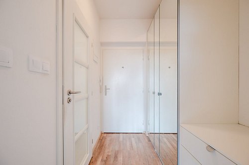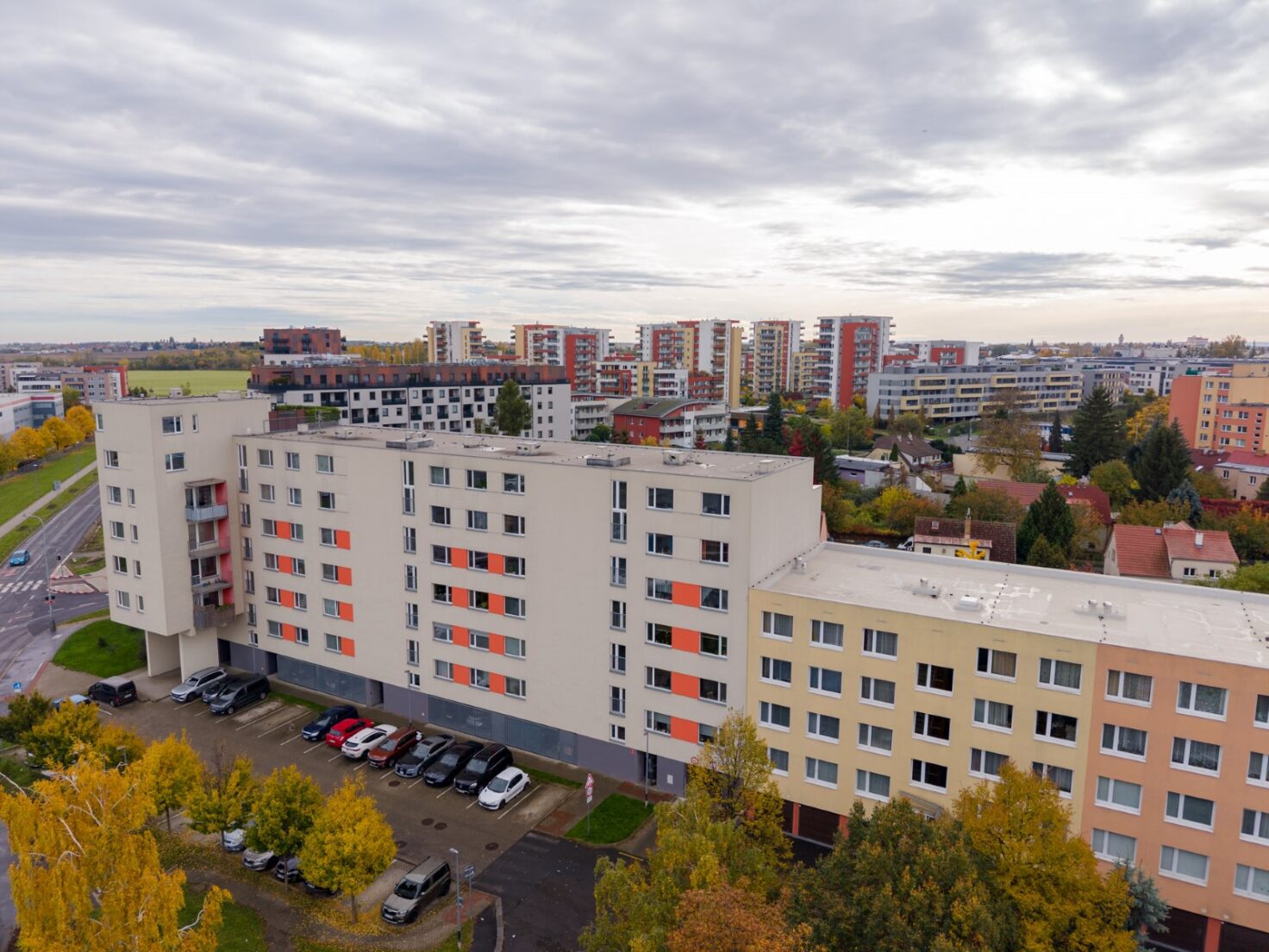 Pro tuto chvíli, než byt navštívíte, mi dovolte stručný souhrn. Příjemným překvapením je praktická koncepce bytu, která byla vymyšlena pro potřeby a komfort mladého páru nebo jednotlivce. Dominantou bytu o celkové ploše 42 m2 je prostorný, prakticky řešený pokoj s kuchyňským koutem. Dojem prostoru umocňují atraktivní velké tabule oken vyplněné trojskly, které mají výborné izolační vlastnosti a zároveň propouštějí dostatek světla během celého roku. Směřují na balkon (6 m2) orientovaný do krajiny. Byt má dostatek úložných možností, k bytu patří i komora (1,6 m2) umístěná na patře. Elegantní koupelna se sprchovým koutem, toaletou a přípojkou na pračku. Předsíň se skříněmi a odkládací plochou. Kuchyňská linka s vestavěnou lednicí. Velkým bonusem bytu je jeho soukromý charakter, v posledním 7. patře domu, daleko od zvědavých očí sousedů protějších domů a bez toho, aniž by vás rušily kroky z bytu nad vámi. Balkon vás bude lákat pomalu posnídat a vychutnat si první ranní kávu a těšit se na večerní západ slunce.